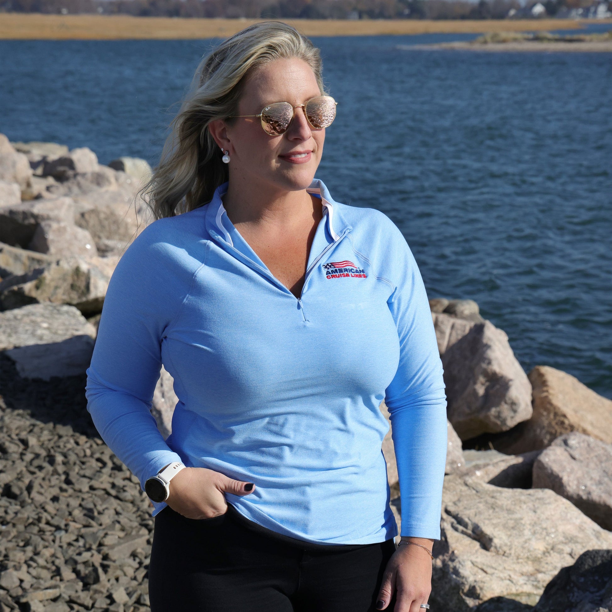 Enjoy lounging on the top deck or exploring one of our many excursions in this versatile quarter-zip!